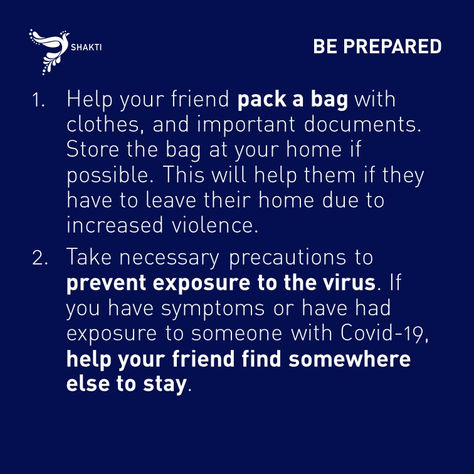 Domestic violence can increase significantly during social distancing and lockdowns. Shakti has compiled safety plans for domestic violence survivors. FAQs are available here, and safety plans are also available in Hindi, Kannada, Tamil, and Malayalam.